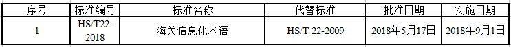 根据《中华人民共和国海关行业标准管理办法(试行)》(海关总署令第140号公布,第235号修改),海关总署对海关行业标准《海关信息化术语》进行了修订(标准编号名称见附件),自2018年9月1日起实施。