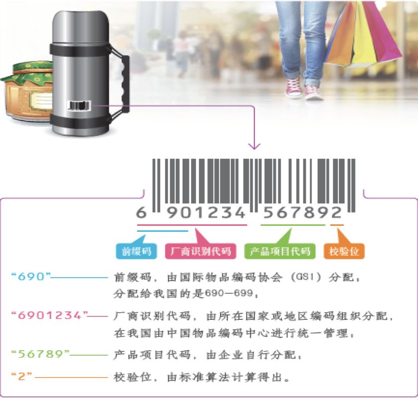 商品条码是由一组规则排列的条、空及其对应代码组成,表示商品代码的条码符号。其中的商品代码是按照GS1(国际物品编码组织)标准编制的用于表示商品标识的唯一代码,具有全球唯一性,它是商品流通过程中的全球唯一身份标识,是商品在市场流通的“身份证”和“通行证”。
